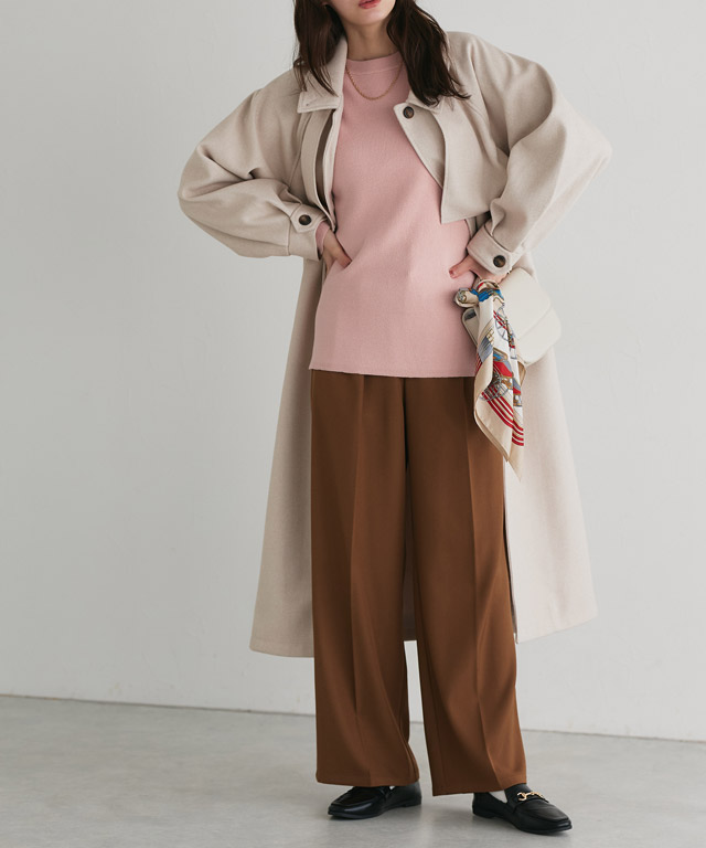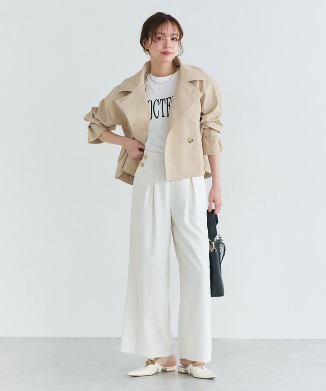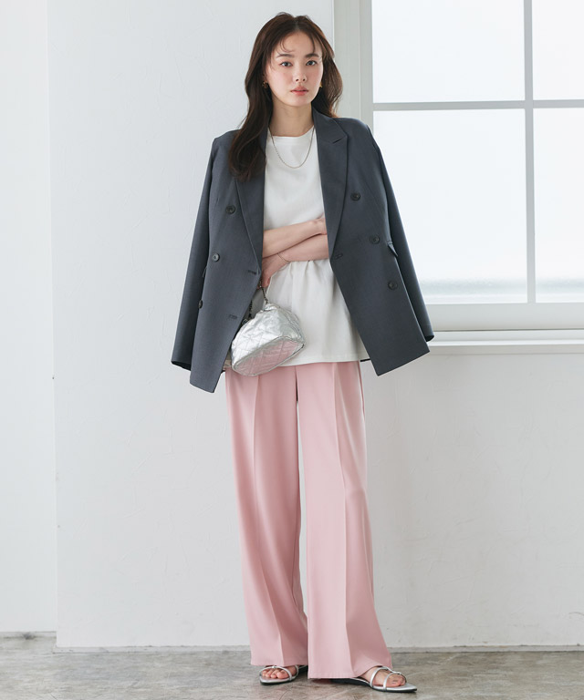 重い落ち感が魅力のワイドパンツなので子供っぽくならず洗練された女性の印象に☆またフロントのタックが動きを出してくれます♪