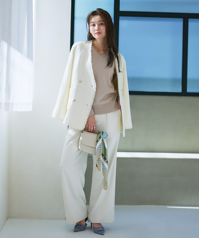 流行りを意識した春コーデで目を引く大人の女性に。