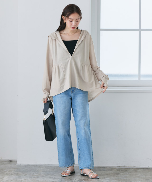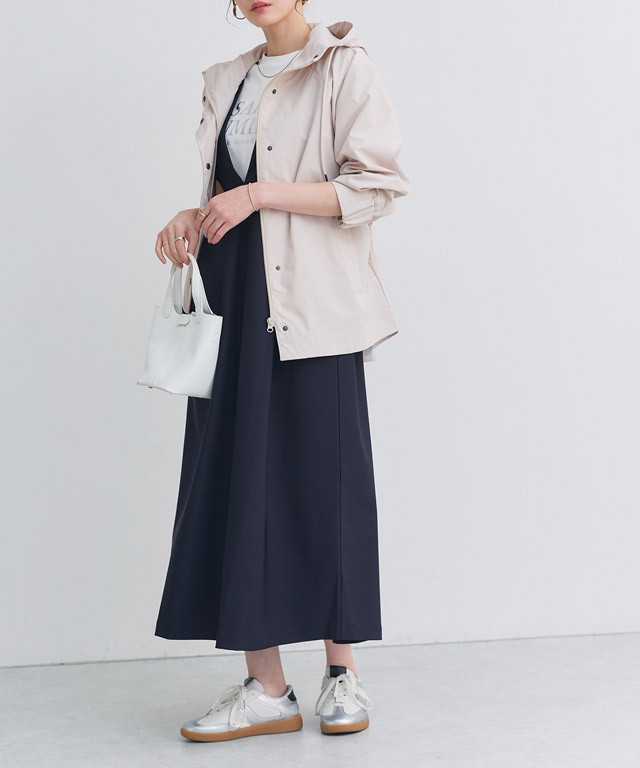 パーカーも厚く重たく見せないようにアイボリーを選ぶことで明るくなり春色に大変身!
