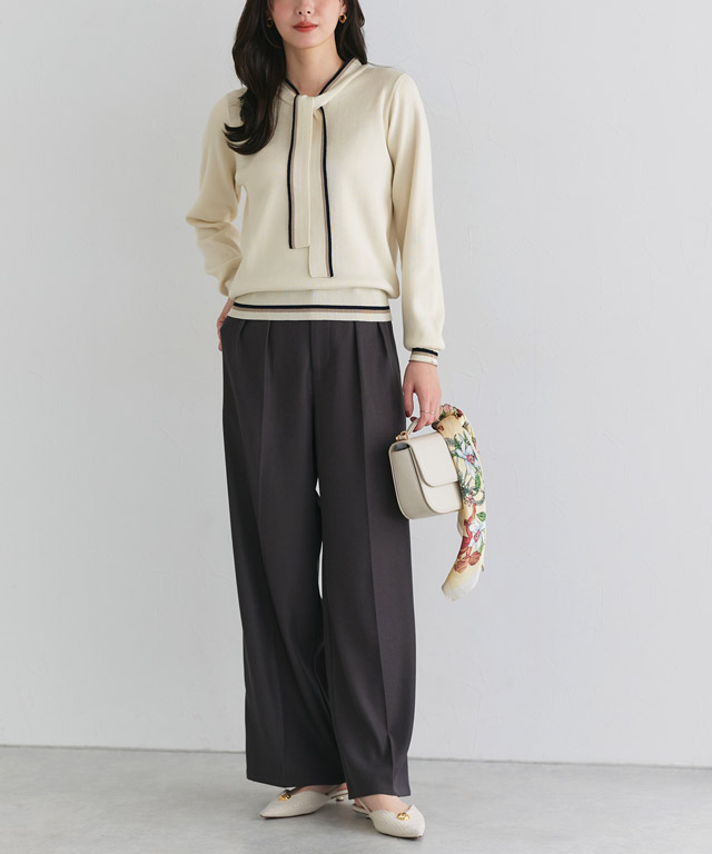 重い落ち感が魅力のワイドパンツなので子供っぽくならず洗練された女性の印象に☆またフロントのタックが動きを出してくれます♪