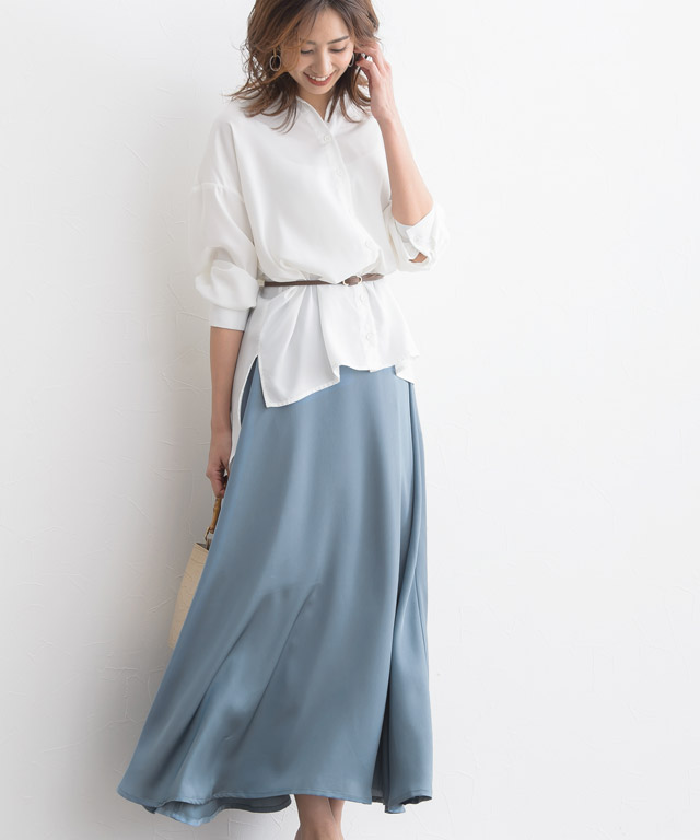 サテンの光沢感が、自然と上品な着こなしに導いてくれます♡