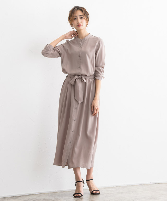 シンプルながらもウエストリボンがさりげないアクセントになり、一枚で簡単に旬の着こなしが完成します♪