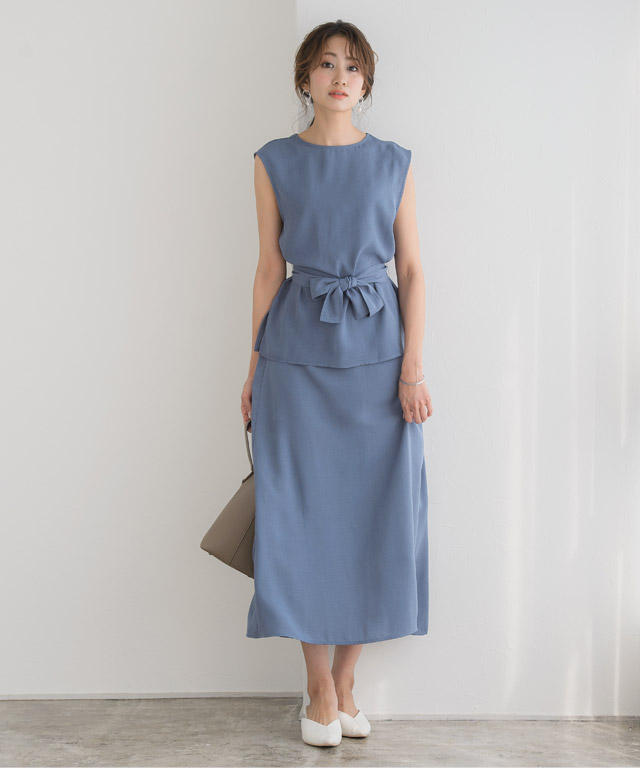 ウエストマークするデザインであれば腰位置を高く見せることができるので、簡単にスタイルアップが叶います。