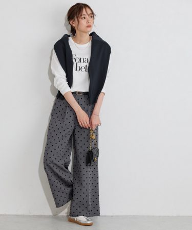 パンツはボクシーな太めストレートシルエットが大人っぽく、マニッシュでお洒落な印象にまとまります。