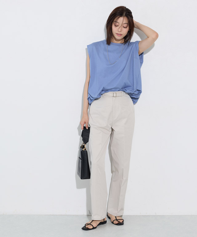 身頃にゆとりを持たせたリラックス感あるTシャツは、ヘムドロスト仕様がポイントで好みに合わせて絞り具合いを調節できるのが嬉しい!ベーシックで着回しやすく1枚あると便利なアイテムです。ベルテッドパンツにトップスの裾をインすれば即こなれコーデが完成♪クールなパンツスタイルには細ストラップサンダルやハンドバッグを投入して、女性らしさを演出してみて♡