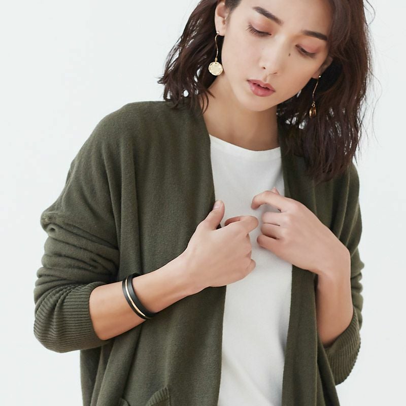 上品で大人な雰囲気に“ゴールドラインレザーバングル”