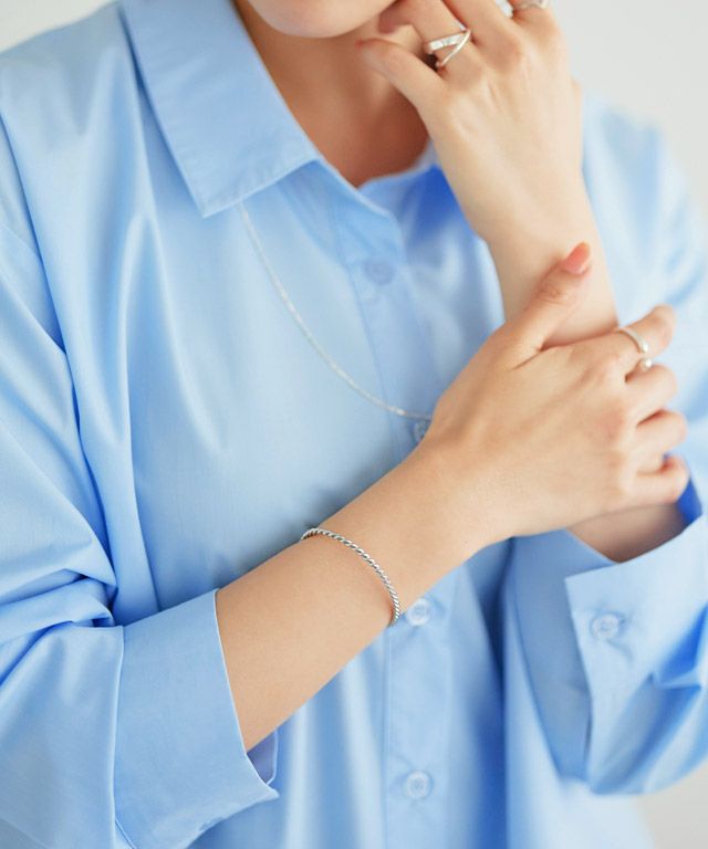 シンプルながらも手元にアクセントをプラス“ツイストストレッチバングル”