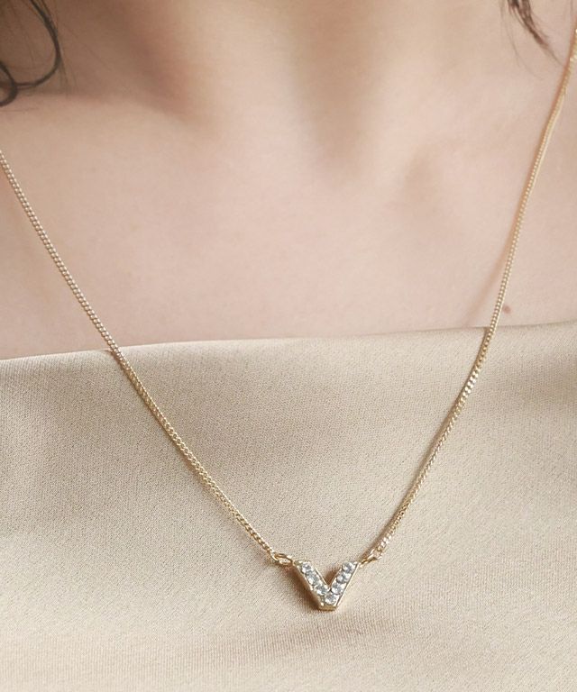 ON/OFF使えるシンプルデザイン“ストーンVトップショートネックレス”