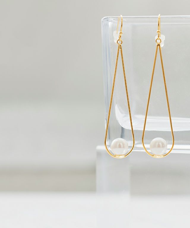 着用しやすいサイズ感と華奢なウェーブラインが女性らしいピアス。耳元のさりげないパールが上品な可愛さを惹き立たせてくれます。