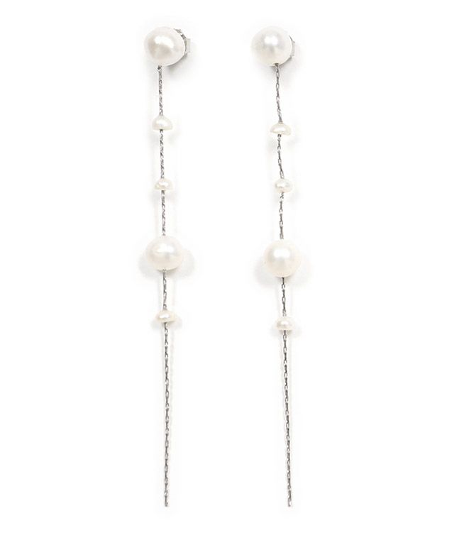 女性らしい繊細ライン“ランダム淡水パールチェーンピアス”