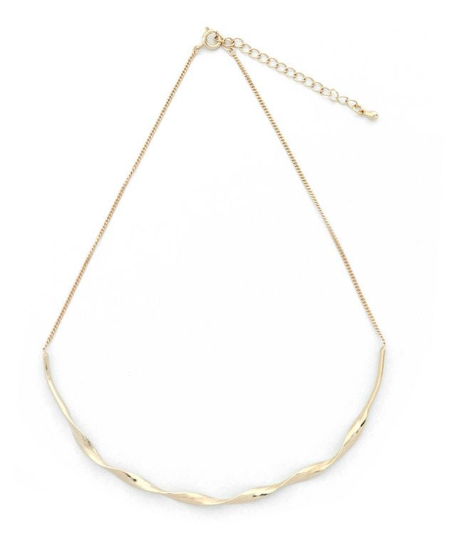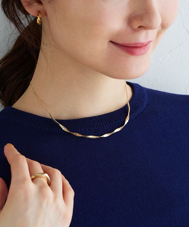 ゴールド購入。ツイストのデザインが映え、シンプルなトップスのアクセントになって素敵です。