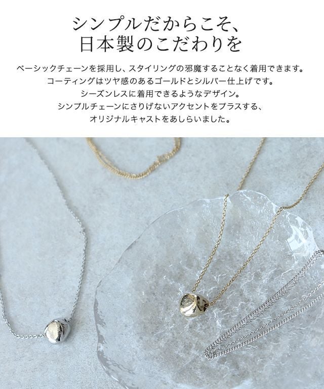 シーズンレスに着用できるようなデザイン。シンプルチェーンにさりげないアクセントをプラスする、オリジナルキャストをあしらいました。