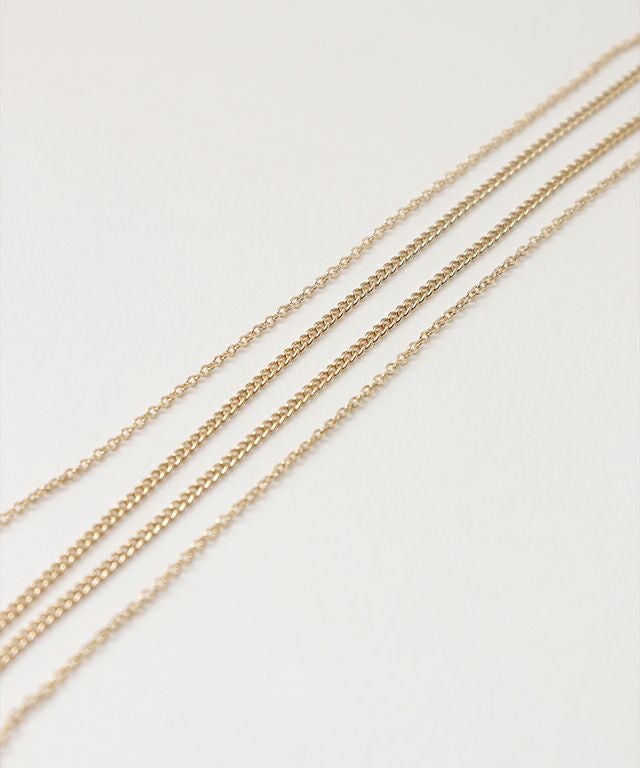 ベーシックチェーンを採用し、スタイリングの邪魔することなく着用できます。コーティングはツヤ感のあるゴールドとシルバー仕上げです。