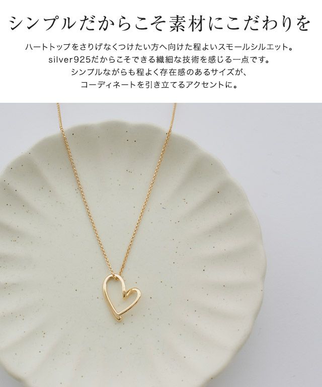 ハートトップをさりげなくつけたい方へ向けた程よいスモールシルエット。silver925だからこそできる繊細な技術を感じる一点です。シンプルながらも程よく存在感のあるサイズが、コーディネートを引き立てるアクセントに。