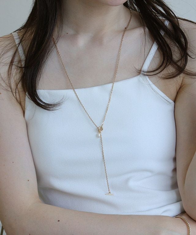 シンプルながらも存在感があり、スタイリングにさりげない華やぎを添えてくれる一品です。2wayで楽しめるデザインが魅力のネックレス。
