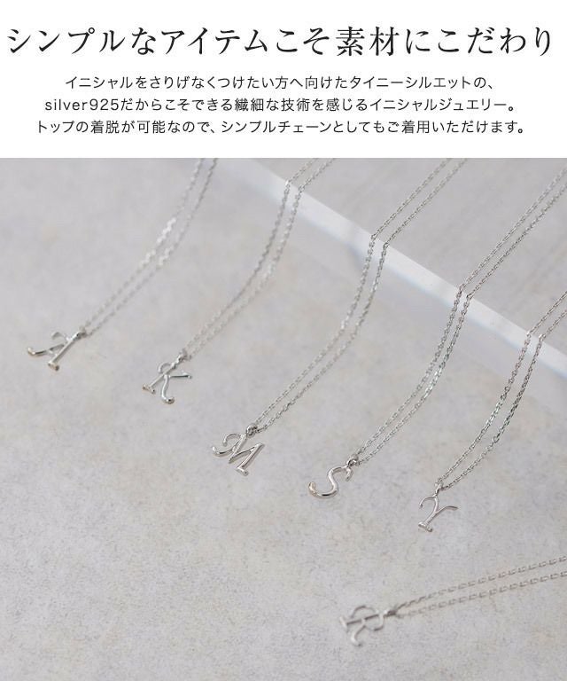 イニシャルをさりげなくつけたい方へ向けたタイニーシルエット。silver925だからこそできる繊細な技術を感じるイニシャルジュエリーです。イニシャルトップの着脱が可能なので、気分に合わせてシンプルチェーンとしてもご着用いただけます。