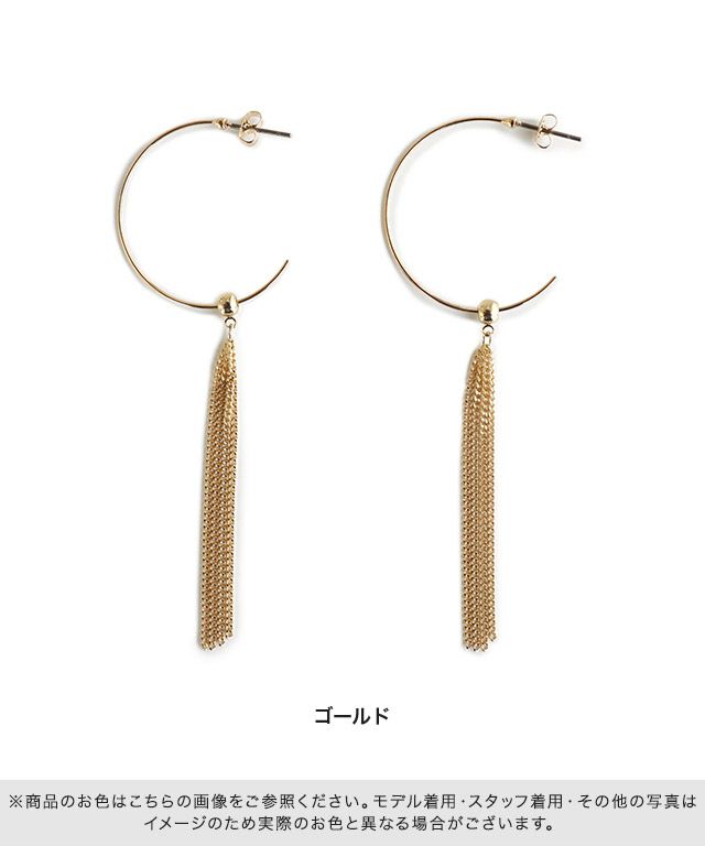 とても繊細な線形フープパーツに取り外しの可能なチェーンタッセルを組み合わせることで、動くたびに揺れるデザインが女性らしい印象に。タッセルを外すと、シンプルなフープピアスとしてもご着用いただけます。