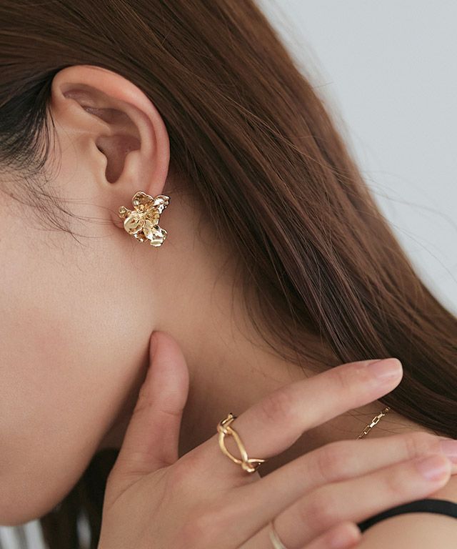顔周りに華やかな印象をプラスする“メタルフラワーピアス”