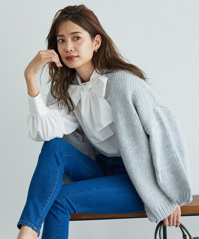 また、ニット製品は生産の過程上「生地を織る際の糸の継ぎ目」繊維の「混紡」、プレス加工、製品洗い加工によって形やサイズ(5cm前後)に誤差が生じる場合がございますが品質上の問題はございません。