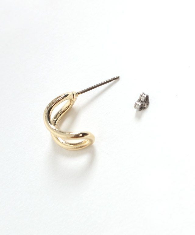 細めの線形フープにカーブを加えたメタルパーツ。コーティングはツヤ感のあるゴールドとシルバーで仕上げました。