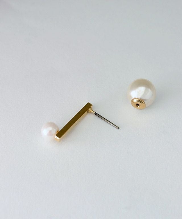 イミテーションパールとメタルバーを掛け合わせることでカジュアルになりすぎずトレンドライクな印象に。パールはイミテーションながらも良質なものをあしらい、素材にもこだわった一点。