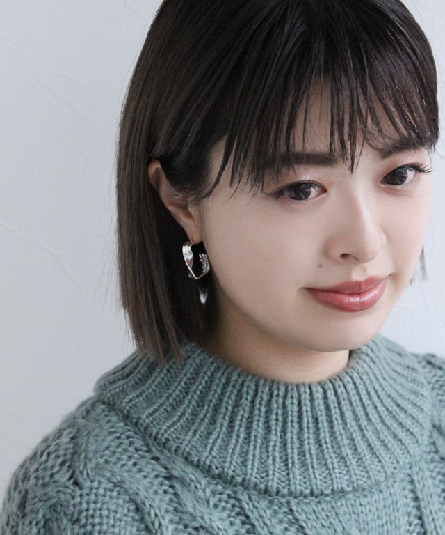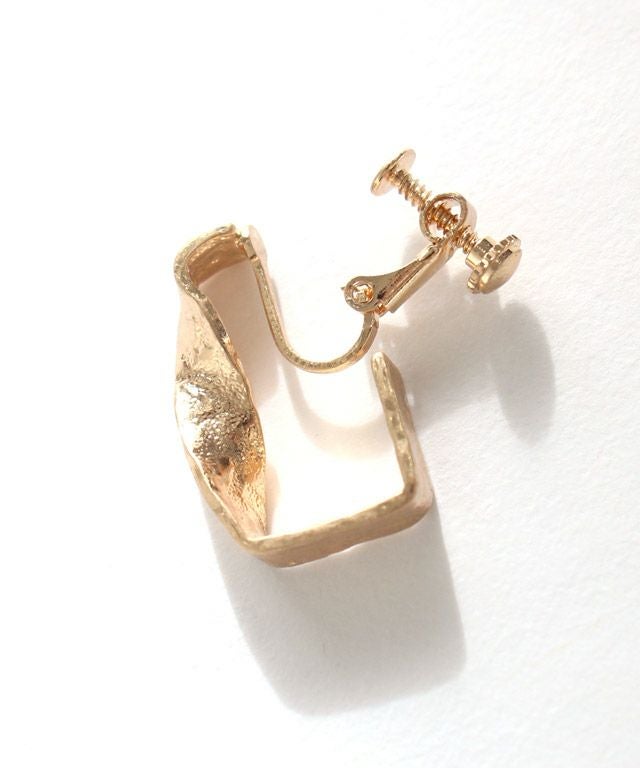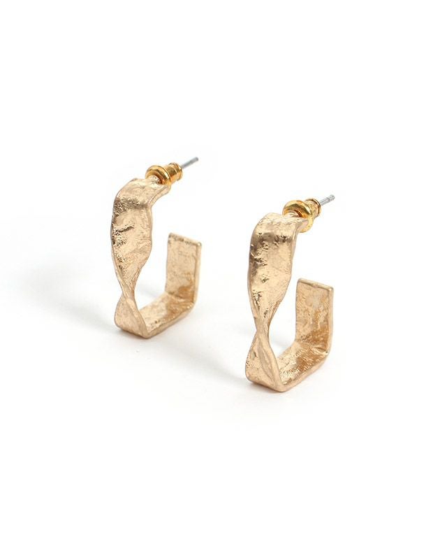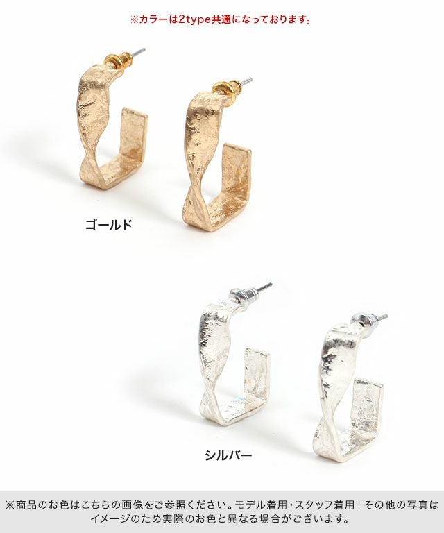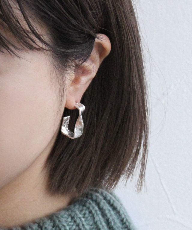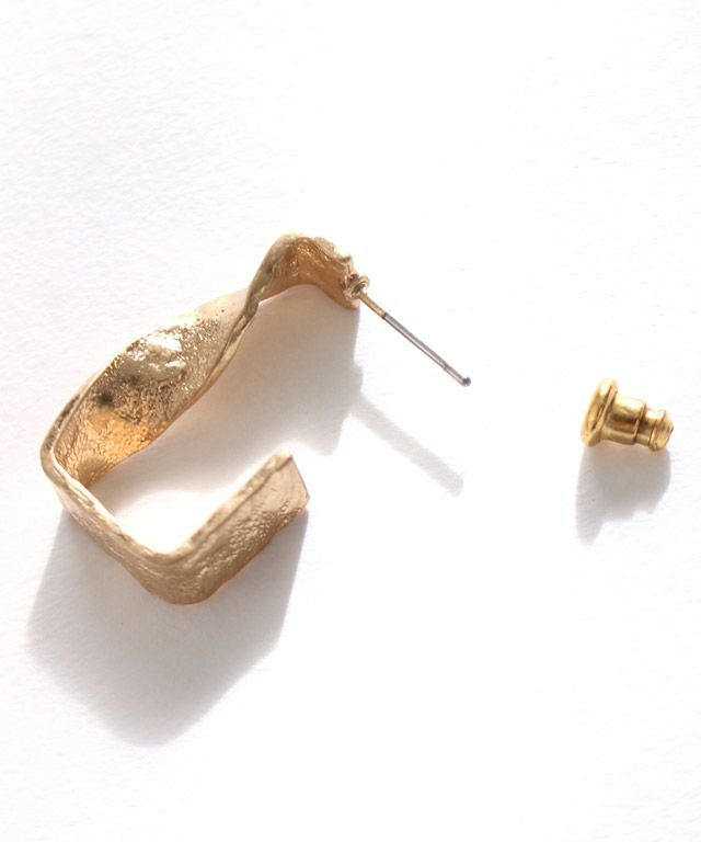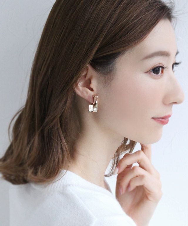 フレームシルエットのスクエアパーツにツイスト加工を施したデザイン。小ぶりながらコーデのアクセントになるアイテムです。