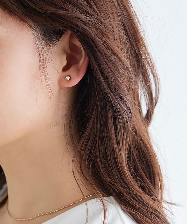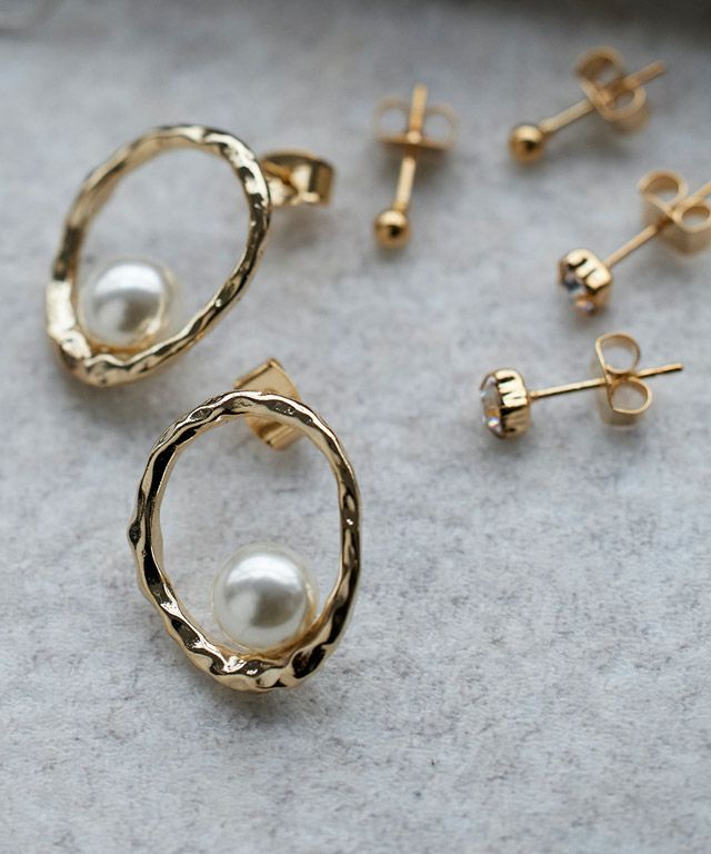 シンプルな1粒メタルと1粒ストーンは共通のデザイン。メインのデザインは繊細なダイヤフープのもの、トレンドのバロックパール、テクスチャーリングにパールがあしらわれた3タイプからお選びいただけます。