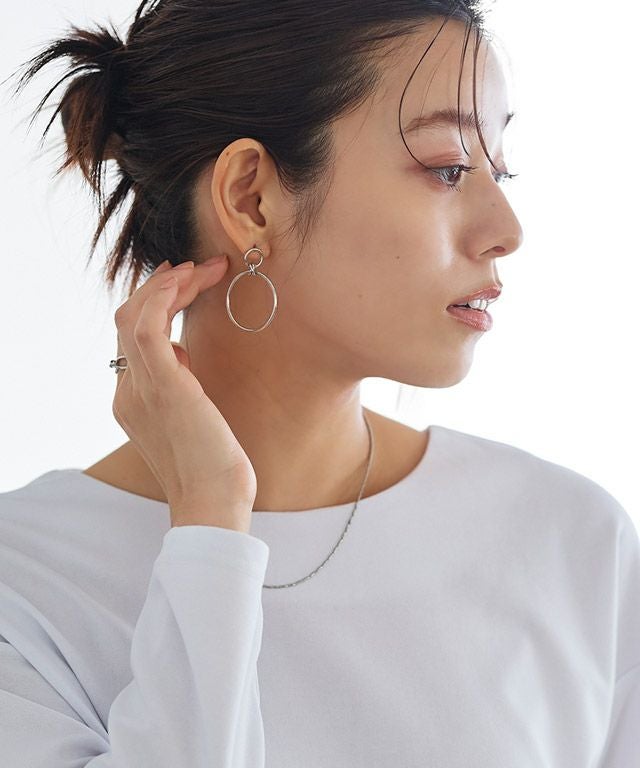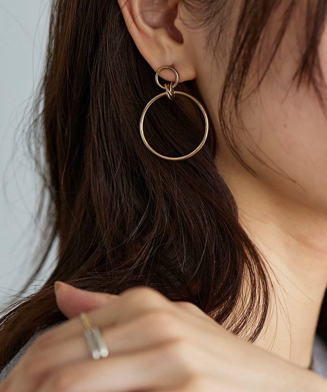 大振りデザインがトレンドライクな印象に“ダブルリングピアス”