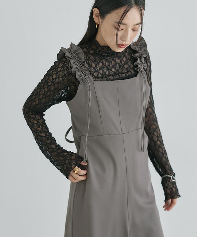 シアーインナーや、キャミソールと合わせるだけで一枚で映える春夏コーデが完成します。秋~冬にかけてはニットを合わせていただくことでシーズンレスに着用いただけます。トレンドライクな装いに