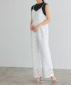 厚みとハリ感のあるレース素材を使用することで綺麗なシルエットをキープ。大振りの花柄レースが女性らしさ溢れるオールインワンです。