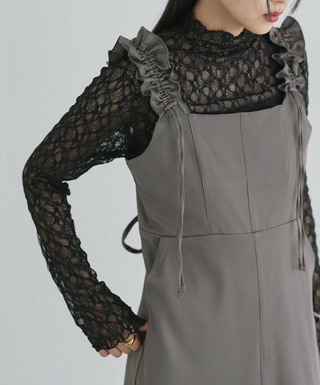 シアーインナーや、キャミソールと合わせるだけで一枚で映える春夏コーデが完成します。秋~冬にかけてはニットを合わせていただくことでシーズンレスに着用いただけます。トレンドライクな装いに