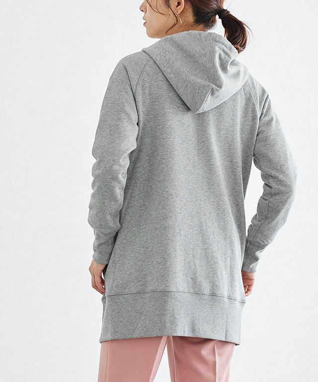 ”スウェット素材 Wジップロング丈 プルパーカー”