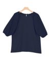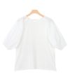 タックを施し立体的に仕上げたパフスリーブが、女性らしいデザインTシャツ。五分袖で肩や二の腕周りをカバーしてくれるところも魅力。楽に着られて着映えする優秀アイテムです。