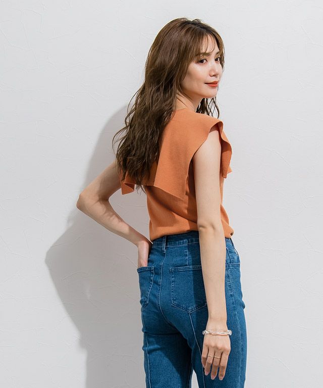スタイリングのアクセントになる“ セーラーカラーノースリーブニット”