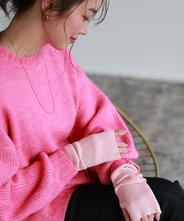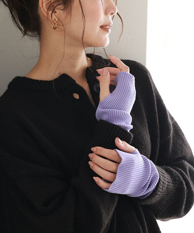 今季外せないトレンドアイテムのアームウォーマー。細いリブ編みがアクセントをプラスします。アウターやニットなどの袖から見えるレイヤードスタイルが旬な装いに。同色系でワントーンにしたり、配色にしてアクセントを持たせても◎