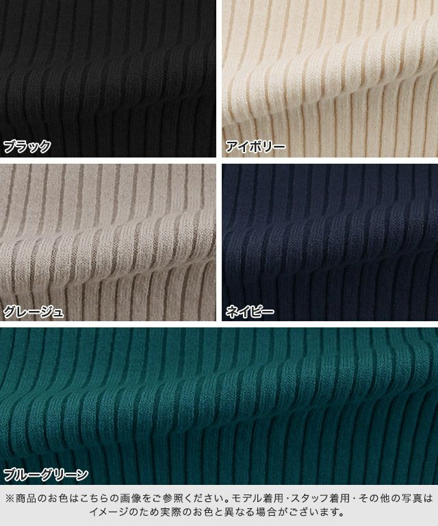 また、ニット製品は生産の過程上「生地を織る際の糸の継ぎ目」繊維の「混紡」、プレス加工、製品洗い加工によって形やサイズ(5cm前後)に誤差が生じる場合がございますが品質上の問題はございません。