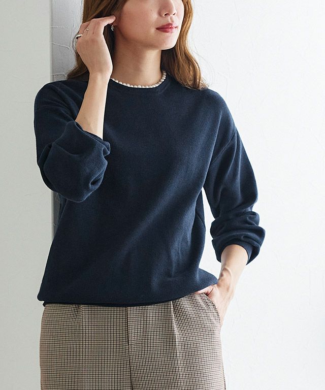 綿のようなさらりとした質感のニット。しっかりとした編地なので、真夏以外の通年着用できるのも嬉しいポイントです。