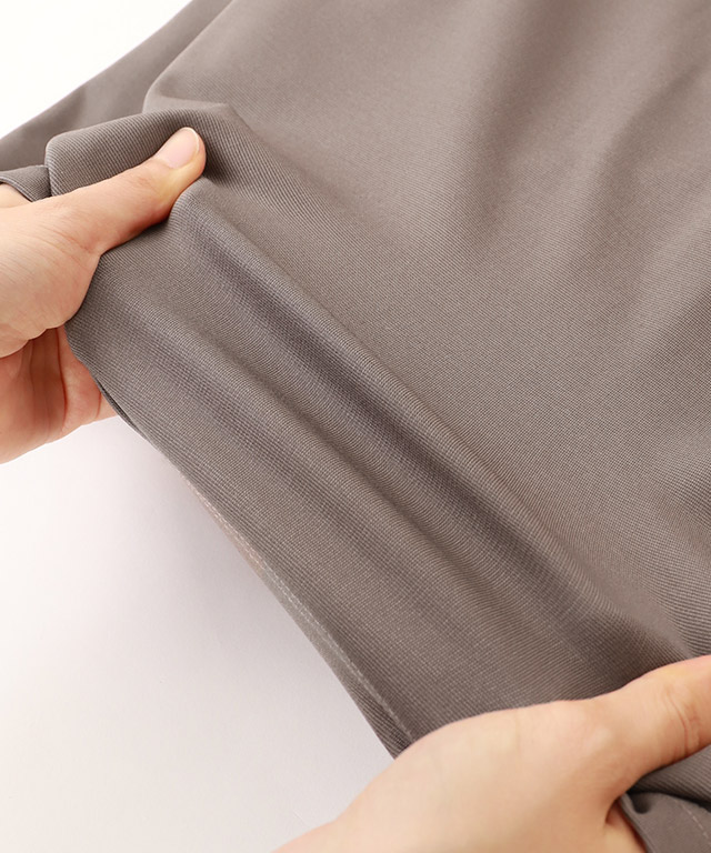 ほんのりとした光沢感をプラスしたことで、ラフになりすぎず「高見え」する一着に。 カットソー合わせでもどこか女性らしく、手抜きに見せない。 頑張りすぎない「大人カジュアル」がこれ一枚で叶います。 シワになりにくくお手入れしやすい素材が魅力ポイント。