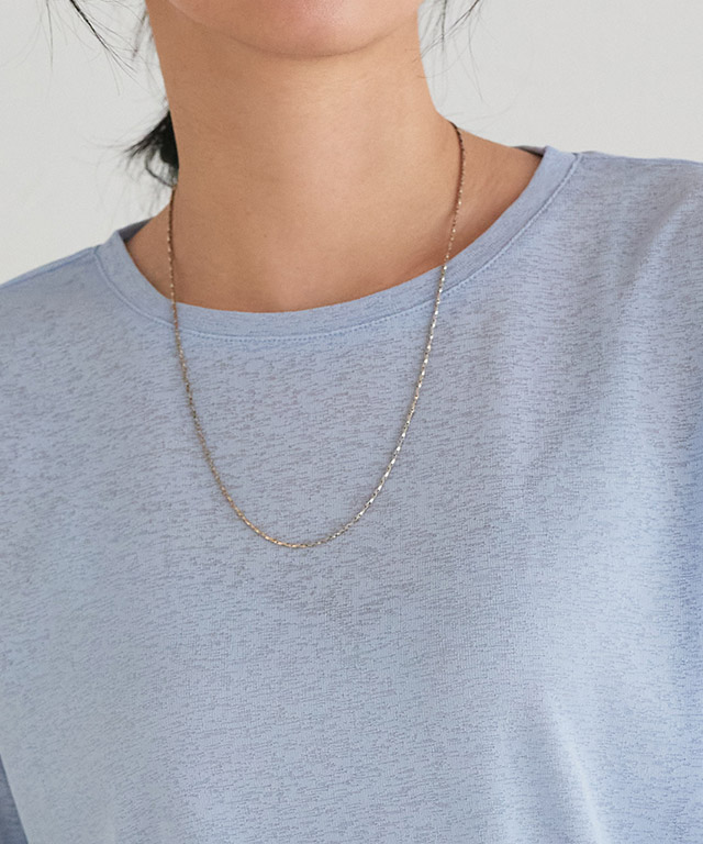 透け感のあるシアー素材が、トレンドライクな印象の一枚。さらっとした肌触りの薄手素材で、レイヤードにはもちろん、暑い季節の日よけ対策にも活躍します。スラブ感のある表情が、シンプルながらもニュアンスをプラス。ポリエステル素材を使用しているためシワになりにくく、お手入れが簡単なところも嬉しいポイントです。