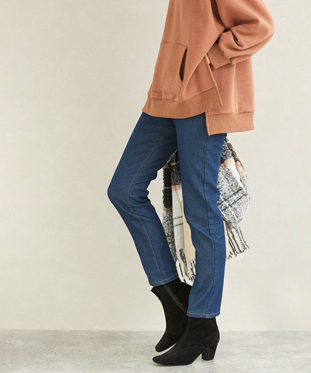 穿いた時に着ぶくれしないよう計算されたデザインが魅力!お腹周りをすっぽり覆うハイライズのデザインにすることで脚長効果&安心感も抜群。膝下から裾にかけてゆとりのあるストレートデザインにすることで、足のラインを拾いにくいキレイ見えシルエットに仕上げました。少し短めがおしゃれに決まるアンクル丈なので、抜け感のある着こなしができます。裏面のフリースは、足首までしっかり施されており、ヒールやフラットシューズでも足首までしっかりあたたかさをキープします。