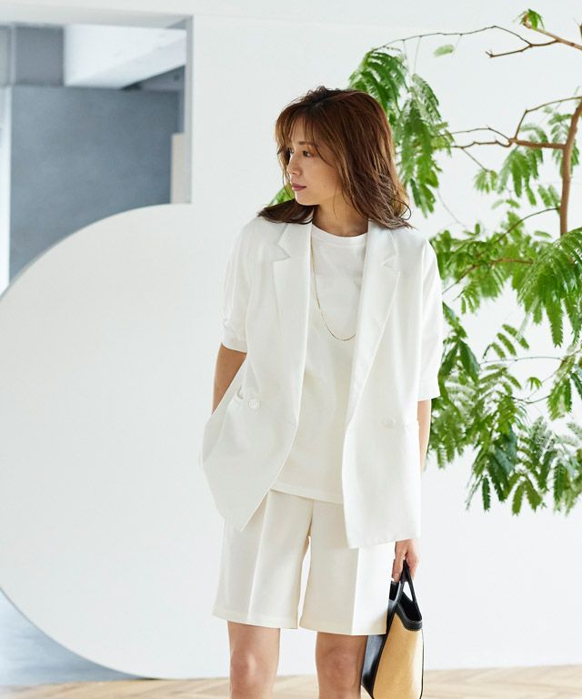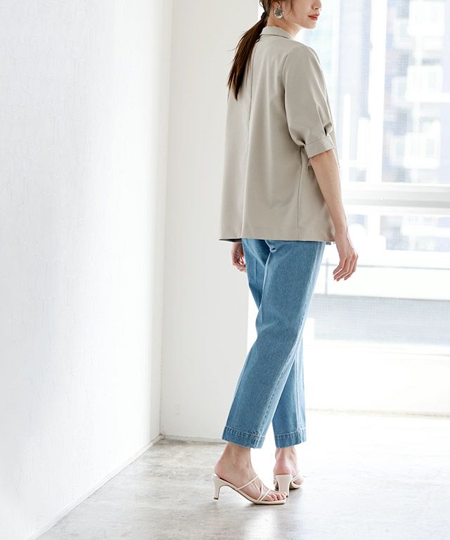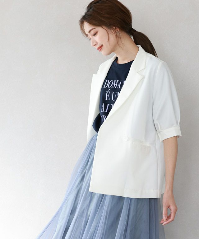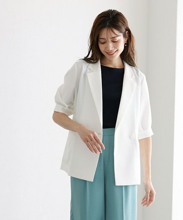 丸みのあるパフスリーブが着映えるデザインジャケット。かっちりしすぎず、程良くカジュアルな抜け感をプラスしてくれます。同素材のハーフパンツと合わせてセットアップでの着用もおすすめです。