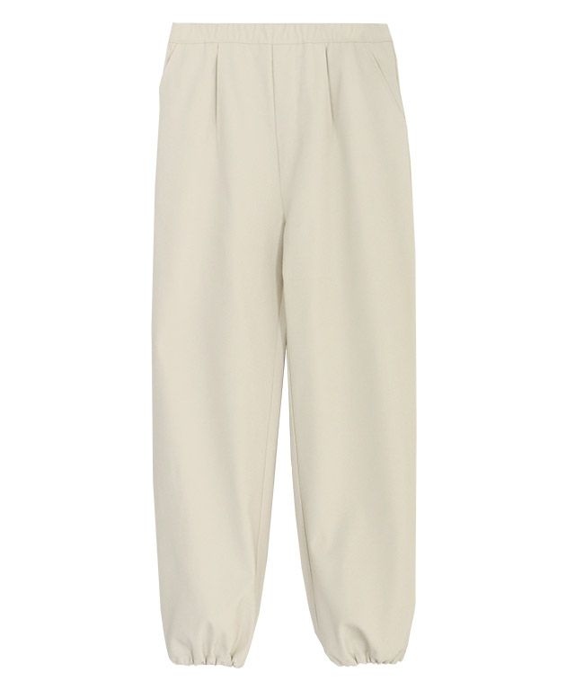 C 着丈は足首ちょうどの丈感でした。ウエストは後ろがゴムで着脱しやすく、ゆとりがありました。ヒップや脚周りはゆとりがあります。楽な着用感でした。裾を絞らなければストレートパンツにもなるので、スタイリングの幅も広がります◎表面はさらっとした生地で内側は微起毛であたたかく着心地が良いです。