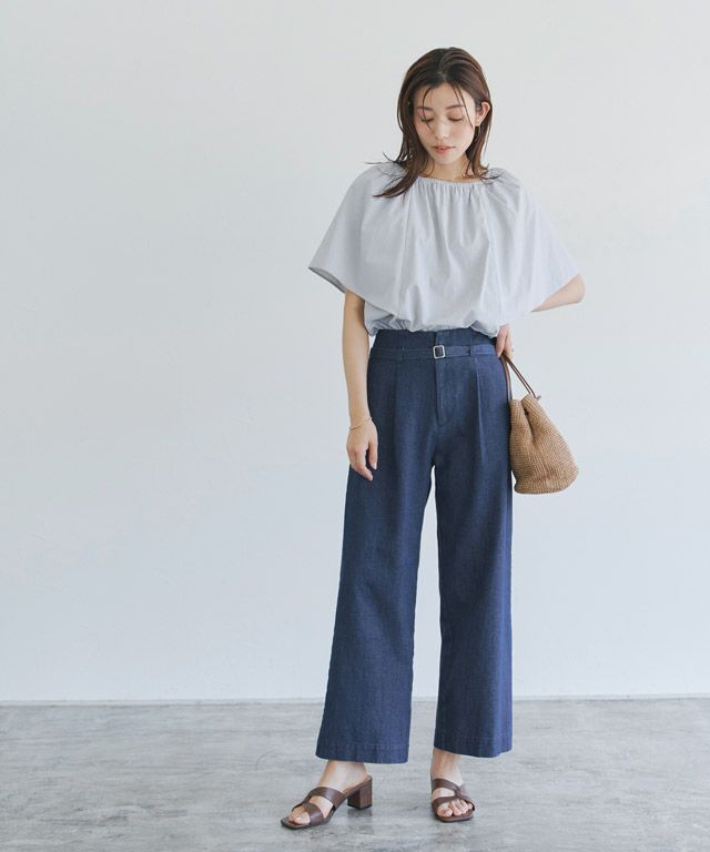 上品さのあるカジュアルスタイルに“ベルト付きタックデニム”