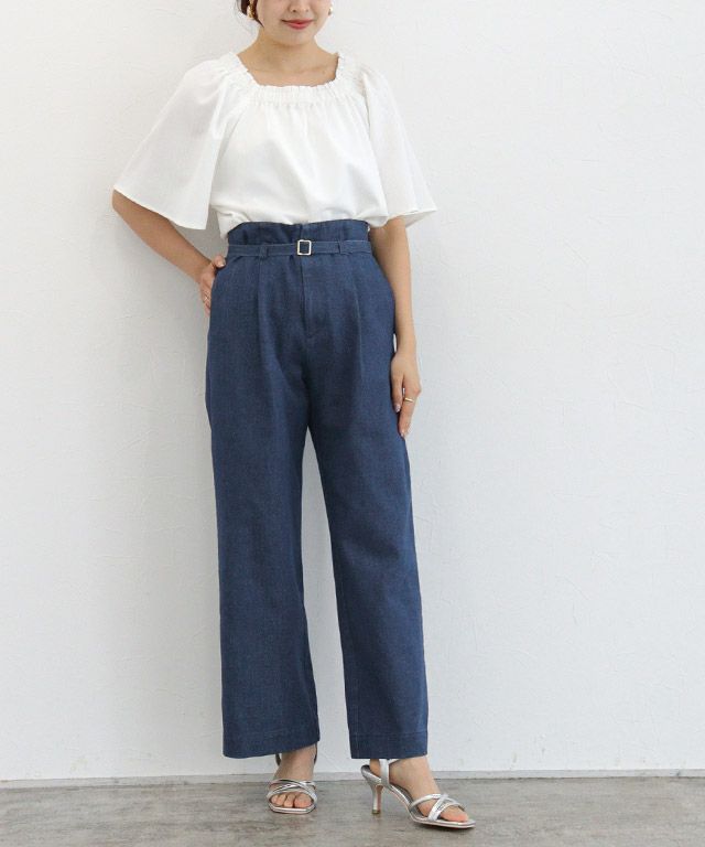 【アウトレットSALE!】ベルト付きタックデニム【スピード配送】