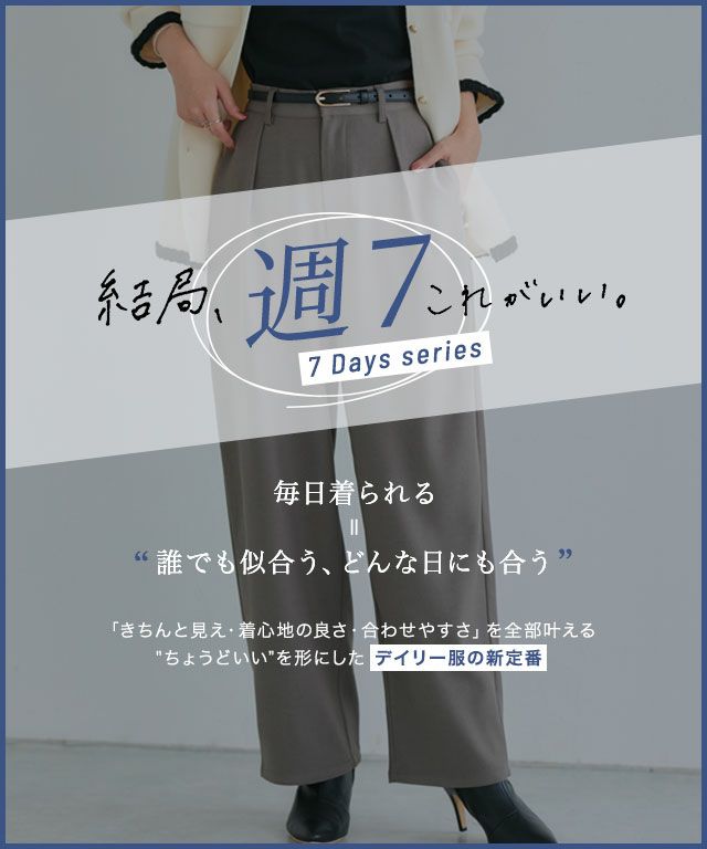 滑らかな肌触りが魅力的な素材を使用し、落ち感があり大人な雰囲気に仕上げてくれます。楽な穿き心地なのに美脚見えする一枚。