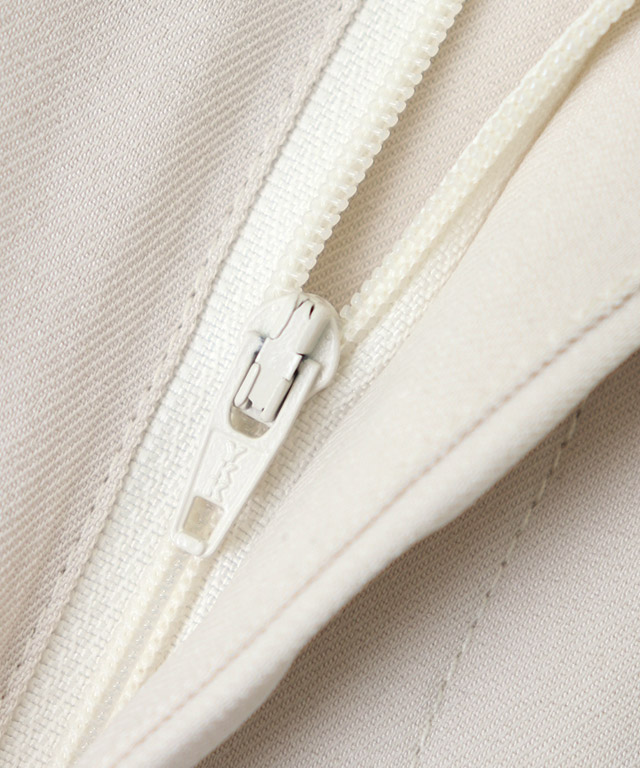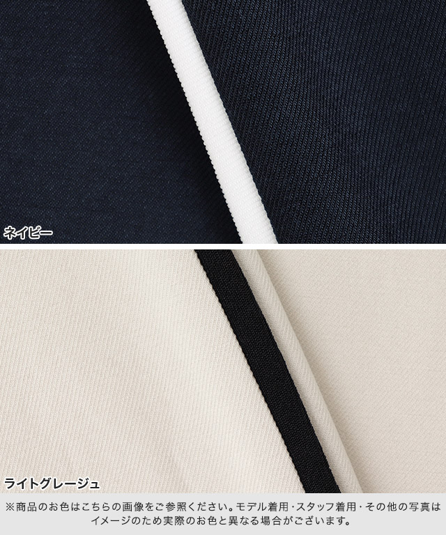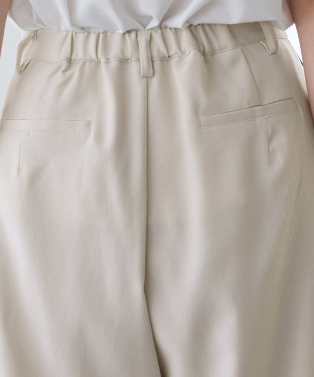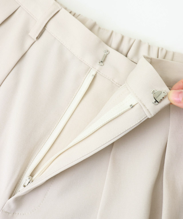 ウエストにはタックを二本入れ、程良いゆとりのあるシルエットに。サイドには配色の細ラインをあしらい、さりげないアクセントをプラス。主張しすぎないデザインで、大人のスタイリングにも取り入れやすい一本に仕上げました。