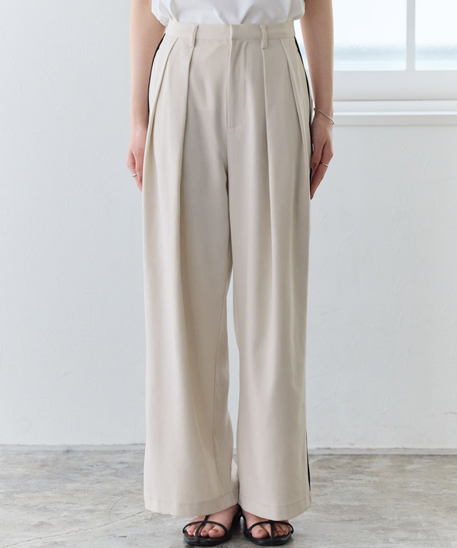 サイドラインタックワイドパンツ