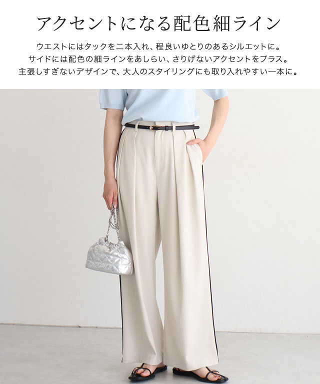 【予約】サイドラインタックワイドパンツ[送料無料]【4月10日頃より順次発送】