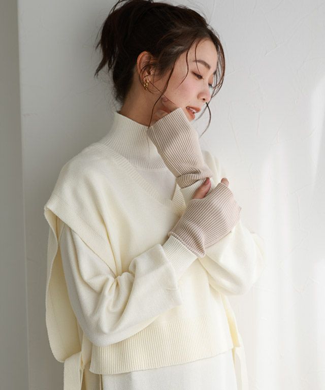 今季外せないトレンドアイテムのアームウォーマー。細いリブ編みがアクセントをプラスします。アウターやニットなどの袖から見えるレイヤードスタイルが旬な装いに。同色系でワントーンにしたり、配色にしてアクセントを持たせても◎
