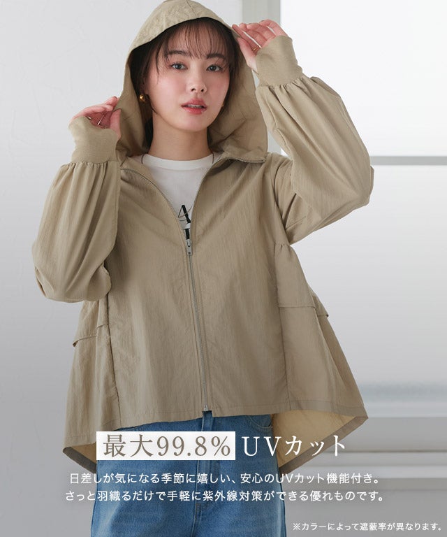 様々なシーンで活躍する“【UVカット/撥水】バックフリルパーカー”
